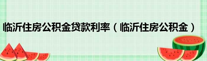 临沂住房公积金贷款利率(临沂住房公积金)