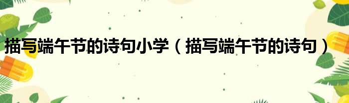 大家好,今天小六子来为大家解答以下的问题,关于描写端午节的诗句小学,描写端午节的诗句这个很多人还不知道,现在让我们一起来看看吧!