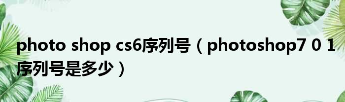 导读 大家好,今天小六子来为大家解答以下的问题,关于photo shop cs6序列号,photoshop7 0 1序列号是多少这个很多人还不知道,现在让我们一