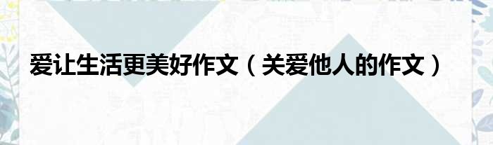 大家好,今天小六子来为大家解答以下的问题,关于爱让生活更美好作文,关爱他人的作文这个很多人还不知道,现在让我们一起来看看吧!