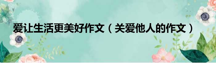 大家好,今天小六子来为大家解答以下的问题,关于爱让生活更美好作文,关爱他人的作文这个很多人还不知道,现在让我们一起来看看吧!