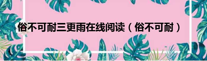 导读 大家好,今天小六子来为大家解答以下的问题,关于俗不可耐三更雨在线阅读,俗不可耐这个很多人还不知道,现在让我们一起来看看吧!1、词 目