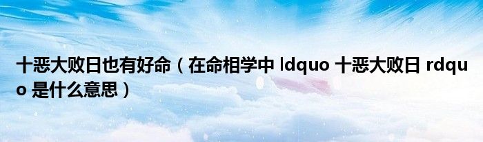 十恶大败日也有好命(在命相学中 ldquo 十恶大败日 rdquo 是什么意思)