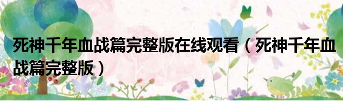 死神千年血战篇完整版在线观看(死神千年血战篇完整版)