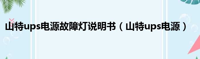 山特ups电源故障灯说明书(山特ups电源)