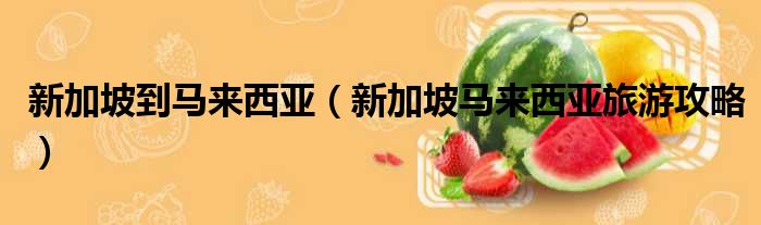 新加坡到马来西亚(新加坡马来西亚旅游攻略)
