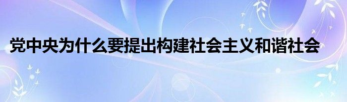 党中央为什么要提出构建社会主义和谐社会