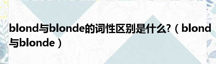 导读 大家好,今天小六子来为大家解答以下的问题,关于blond与blonde的词性区别是什么?,blond与blonde这个很多人还不知道,现在让我们一起来看看