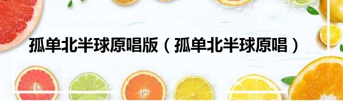 导读 大家好,今天小六子来为大家解答以下的问题,关于孤单北半球原唱版,孤单北半球原唱这个很多人还不知道,现在让我们一起来看看吧!1、《孤单
