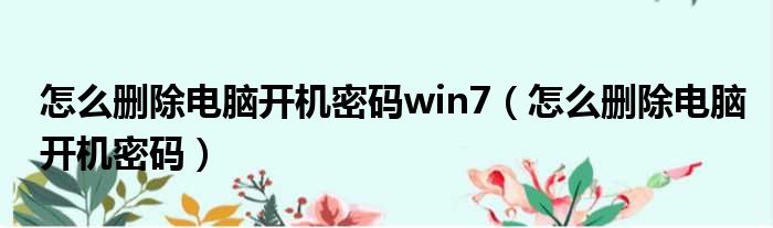 怎么删除电脑开机密码win7(怎么删除电脑开机密码)