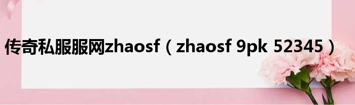 大家好,今天小六子来为大家解答以下的问题,关于传奇私服服网zhaosf,zhaosf 9pk 52345这个很多人还不知道,现在让我们一起来看看吧!