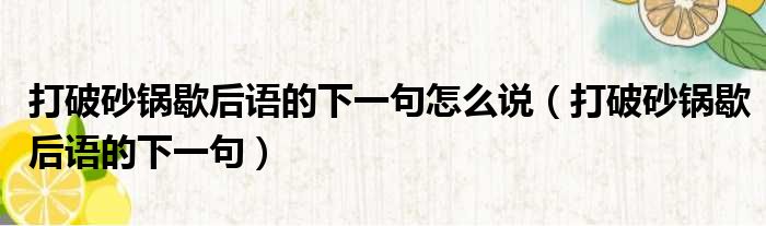 打破砂锅歇后语的下一句怎么说(打破砂锅歇后语的下一句)