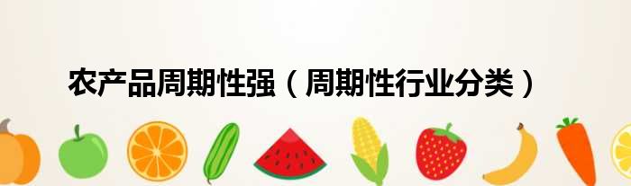 大家好,今天小六子来为大家解答以下的问题,关于农产品周期性强,周期性行业分类这个很多人还不知道,现在让我们一起来看看吧!
