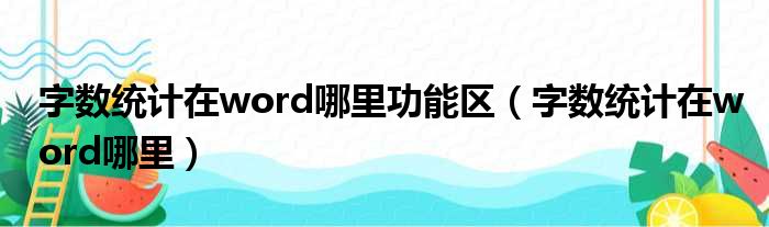 导读 大家好,今天小六子来为大家解答以下的问题,关于字数统计在word哪里功能区,字数统计在word哪里这个很多人还不知道,现在让我们一起来看看