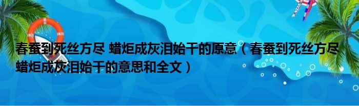 春蚕到死丝方尽 蜡炬成灰泪始干的原意(春蚕到死丝方尽 蜡炬成灰泪始干的意思和全文)