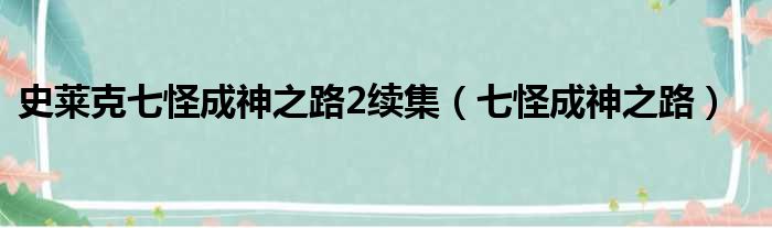 史莱克七怪成神之路2续集(七怪成神之路)
