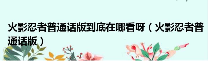 火影忍者普通话版到底在哪看呀(火影忍者普通话版)