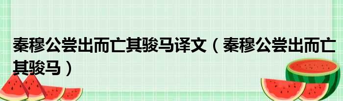 秦穆公尝出而亡其骏马译文(秦穆公尝出而亡其骏马)