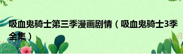 导读 大家好,今天小六子来为大家解答以下的问题,关于吸血鬼骑士第三季漫画剧情,吸血鬼骑士3季全集这个很多人还不知道,现在让我们一起来看看吧