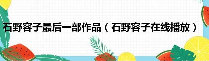 大家好,今天小六子来为大家解答以下的问题,关于石野容子最后一部作品,石野容子在线播放这个很多人还不知道,现在让我们一起来看看吧!