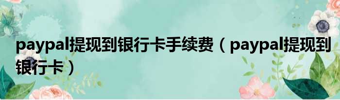paypal提现到银行卡手续费(paypal提现到银行卡)