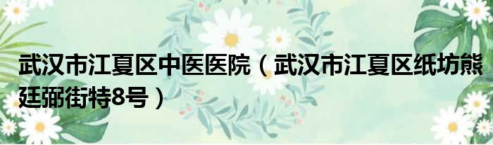 导读 大家好,今天小六子来为大家解答以下的问题,关于武汉市江夏区中医医院,武汉市江夏区纸坊熊廷弼街特8号这个很多人还不知道,现在让我们一起