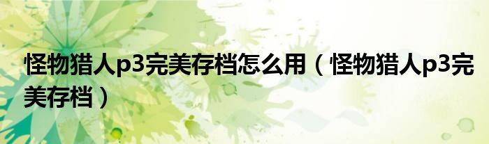 导读 大家好,今天小六子来为大家解答以下的问题,关于怪物猎人p3完美存档怎么用,怪物猎人p3完美存档这个很多人还不知道,现在让我们一起来看看