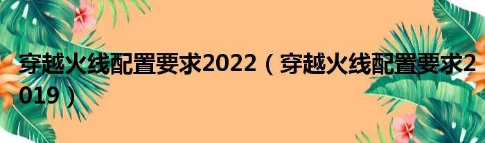 穿越火线配置要求2022(穿越火线配置要求2019)