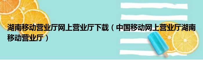 湖南移动营业厅网上营业厅下载(中国移动网上营业厅湖南移动营业厅)