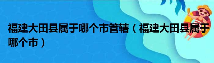 导读 大家好,今天小六子来为大家解答以下的问题,关于福建大田县属于哪个市管辖,福建大田县属于哪个市这个很多人还不知道,现在让我们一起来看