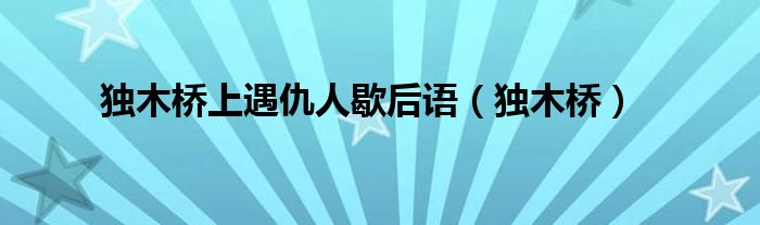 导读 大家好,今天小六子来为大家解答以下的问题,关于独木桥上遇仇人歇后语,独木桥这个很多人还不知道,现在让我们一起来看看吧!1、首先根据名
