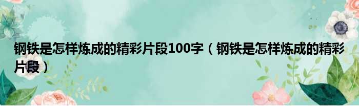 钢铁是怎样炼成的精彩片段100字(钢铁是怎样炼成的精彩片段)
