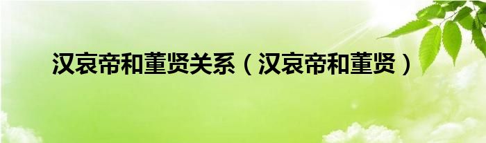 汉哀帝和董贤关系(汉哀帝和董贤)