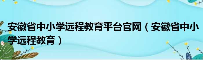 安徽省中小学远程教育平台官网(安徽省中小学远程教育)