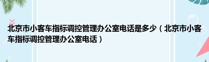 北京市小客车指标调控管理办公室电话是多少(北京市小客车指标调控管理办公室电话)