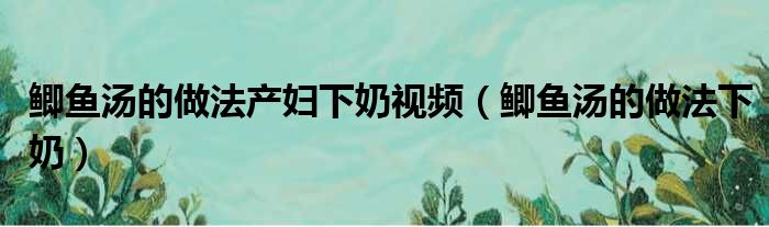 鲫鱼汤的做法产妇下奶视频(鲫鱼汤的做法下奶)