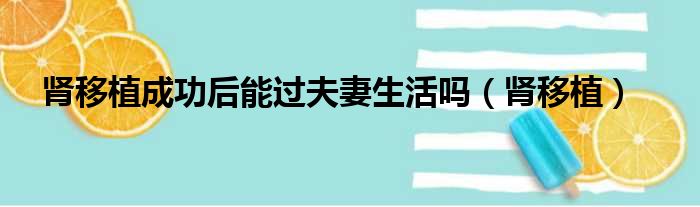 肾移植成功后能过夫妻生活吗(肾移植)