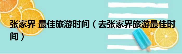 张家界 最佳旅游时间(去张家界旅游最佳时间)