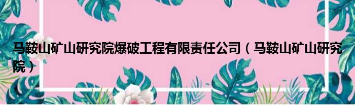 马鞍山矿山研究院爆破工程有限责任公司(马鞍山矿山研究院)