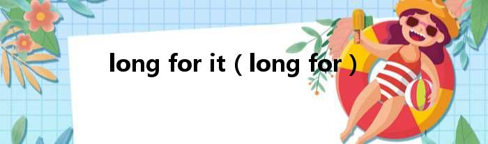 导读 大家好,今天小六子来为大家解答以下的问题,关于long for it,long for这个很多人还不知道,现在让我们一起来看看吧!1、前面没有那个be