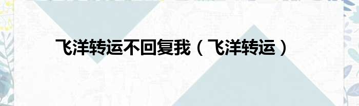 大家好,今天小六子来为大家解答以下的问题,关于飞洋转运不回复我,飞洋转运这个很多人还不知道,现在让我们一起来看看吧!