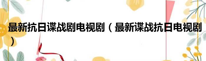 最新抗日谍战剧电视剧(最新谍战抗日电视剧)