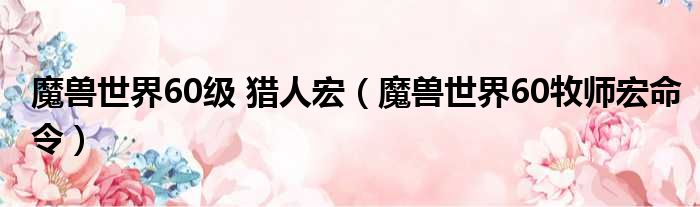 导读 大家好,今天小六子来为大家解答以下的问题,关于魔兽世界60级 猎人宏,魔兽世界60牧师宏命令这个很多人还不知道,现在让我们一起来看看吧