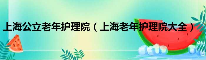 大家好,今天小六子来为大家解答以下的问题,关于上海公立老年护理院,上海老年护理院大全这个很多人还不知道,现在让我们一起来看看吧!