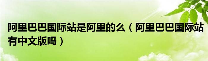 阿里巴巴国际站是阿里的么(阿里巴巴国际站有中文版吗)