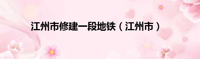 大家好,今天小六子来为大家解答以下的问题,关于江州市修建一段地铁,江州市这个很多人还不知道,现在让我们一起来看看吧!