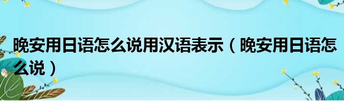 晚安用日语怎么说用汉语表示(晚安用日语怎么说)