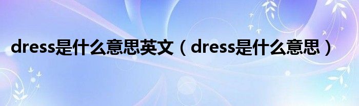 导读 大家好,今天小六子来为大家解答以下的问题,关于dress是什么意思英文,dress是什么意思这个很多人还不知道,现在让我们一起来看看吧!1、