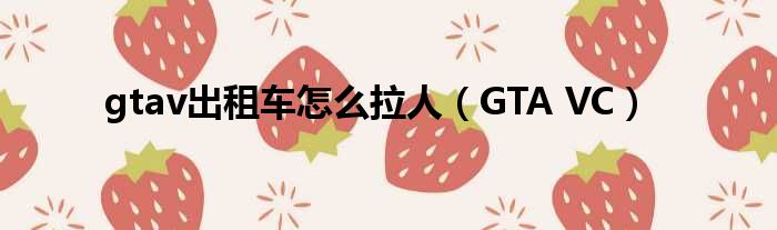 gtav出租车怎么拉人(GTA VC)