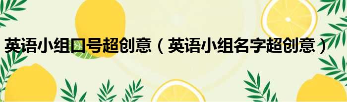 导读 大家好,今天小六子来为大家解答以下的问题,关于英语小组口号超创意,英语小组名字超创意这个很多人还不知道,现在让我们一起来看看吧!1、